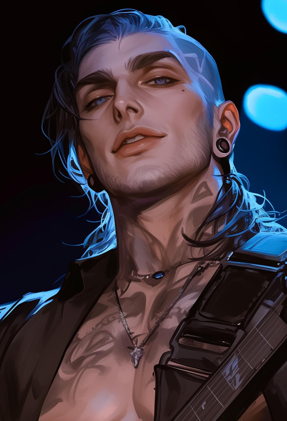 Abaddon Cross, the intense and enigmatic guitarist of False Prophets, is a man defined by the chaos within his mind and the art he creates to escape it. Born Daniel Cross, Abaddon took on his new name as both a shield and a declaration, embracing the darkness that once threatened to consume him. Known for his blistering solos and haunting riffs, Abaddon’s playing style is as unpredictable and captivating as the man himself.Though he rarely speaks in interviews and avoids fan interactions, those closest to him know Abaddon as a deeply loyal friend, fiercely protective of his bandmates and haunted by a past steeped in religious trauma and mental illness. His music is his outlet, a way to channel the chaos in his head into something tangible, something powerful, something that drowns out the whispers that still echo through his mind.Fun Fact: Abaddon has a collection of tiny wooden and clay figurines he carves in his rare moments of calm, finding peace in the small, precise movements required for the craft.