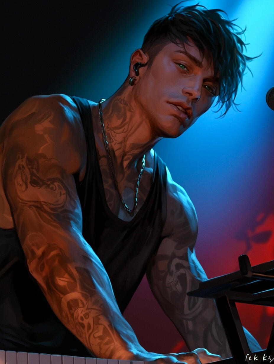 Before he became the band’s quiet, introspective keyboardist, Ichabod was known as Father Gregory Phelps—a priest who walked away from his faith and his vows. Growing up as the youngest of six siblings in a cramped, creaking house on the edge of Seattle, Gregory found his solace in the chipped keys of an old upright piano and the flicker of candlelight dancing over his mother’s makeshift shrine to the Virgin Mary. It was a small comfort in a world that often felt too heavy, too rigid, too suffocating.As a young priest, Gregory tried to be the kind of change he wanted to see in the world, but the cracks in his faith widened with every whispered prayer, every lonely night in the cold stone halls of his parish. The final blow came when the woman he loved, a fiercely devout nun with a laugh that echoed through the empty church, died in a car accident just days after they abandoned their vows to be together. She was his lifeline, his second chance, and her death shattered what little faith he had left.He spent weeks kneeling by her grave, his whispered apologies lost to the rain and the wind, his fingers tracing the letters of her name until his knuckles bled. It was there that Judas found him one rainy night, cutting through the cemetery on his way back to the motel where the band was staying. The encounter sparked an unlikely camaraderie, and Gregory found himself laughing for the first time in weeks as he shared his story over whiskey and cigarette smoke in the band’s cramped motel room.It was Abaddon who suggested the name Ichabod, a grim nod to the biblical phrase meaning "the glory has departed." The name stuck, and Gregory left his old life behind, becoming Ichabod—the shadowed, introspective soul of False Prophets, whose quiet, haunting melodies echo the ghosts he still carries with him.Fun Fact: Despite his somber vibe, Ichabod can still play every hymn he ever learned from memory, though he usually only does so when the guys bet him he can't.